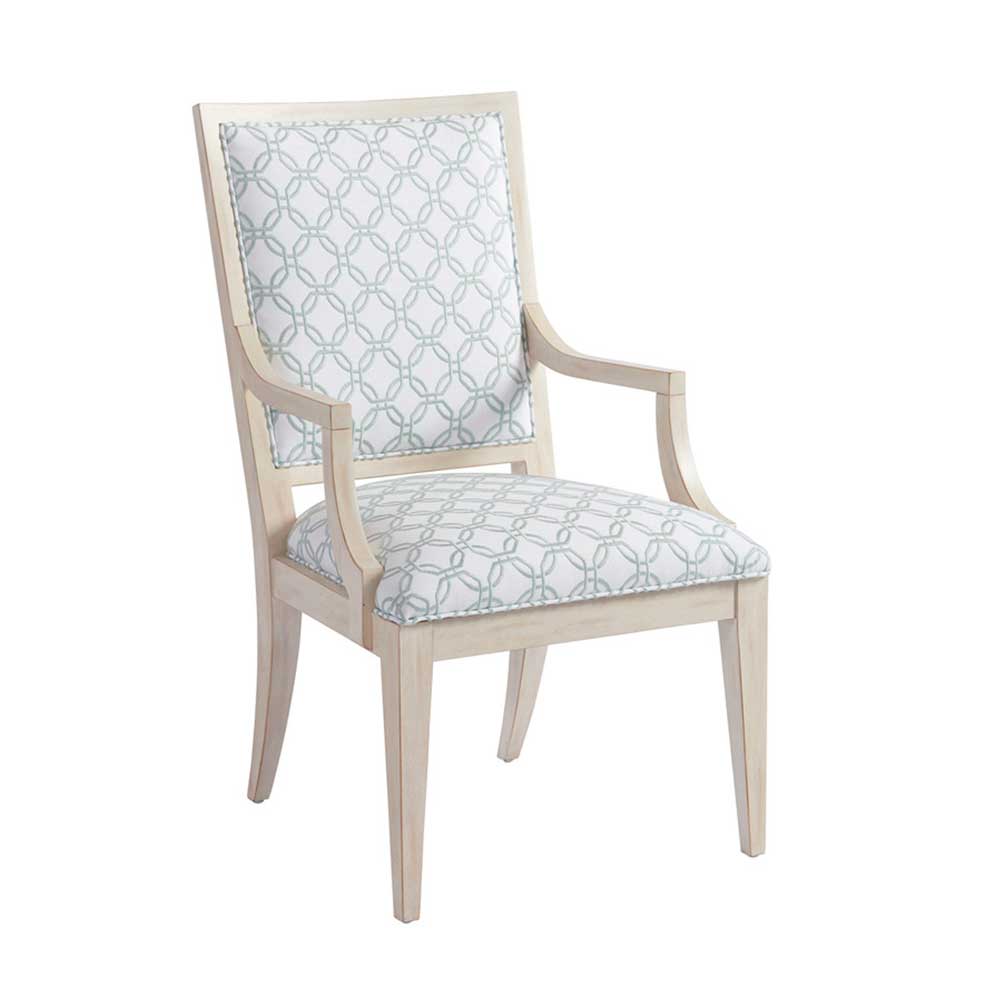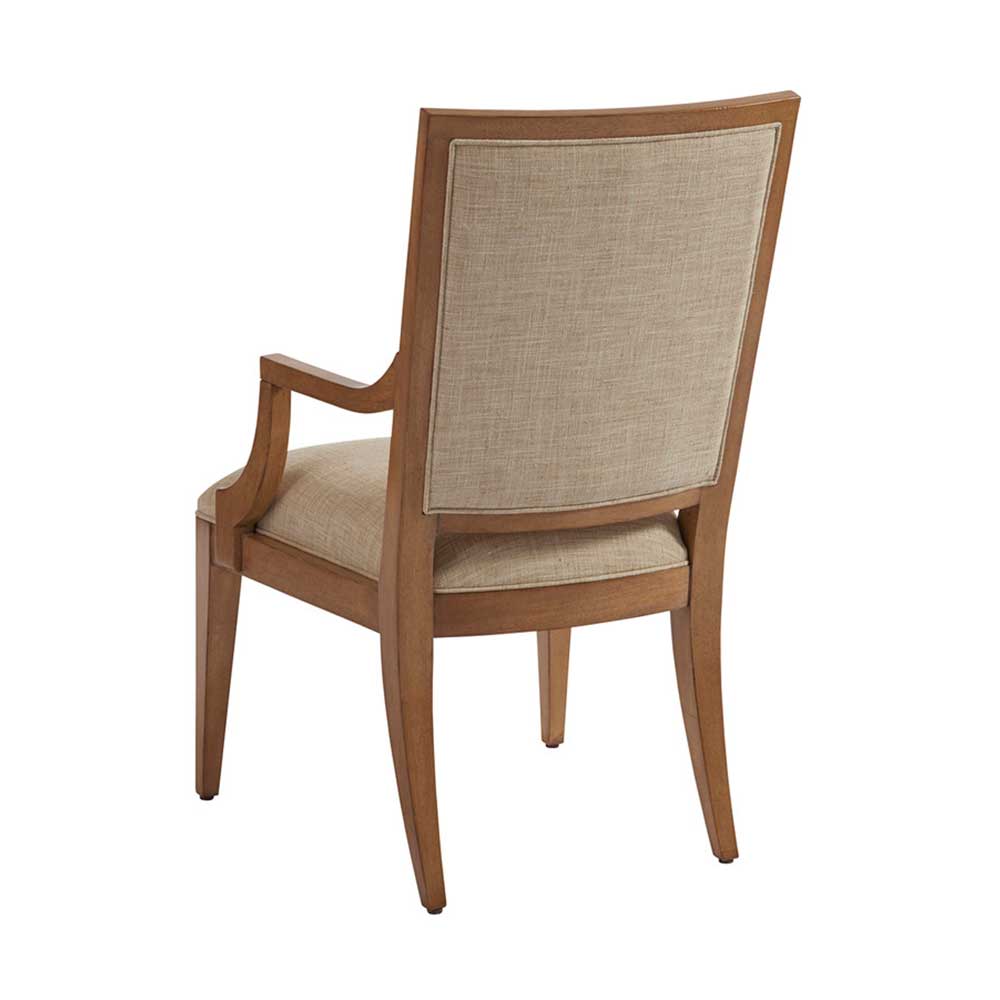The classic design of the Eastbluff dining chair marries a wooden frame, shown in the Sandstone finish with welted upholstered panels on the inside and outside back of the piece. The design comes standard in the Ventura pattern 423311, and is also available in the Sailcoth finish
