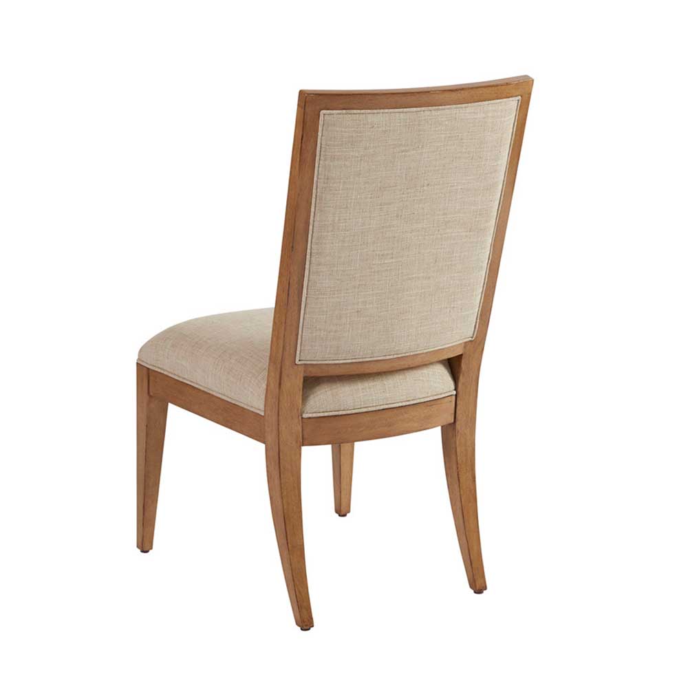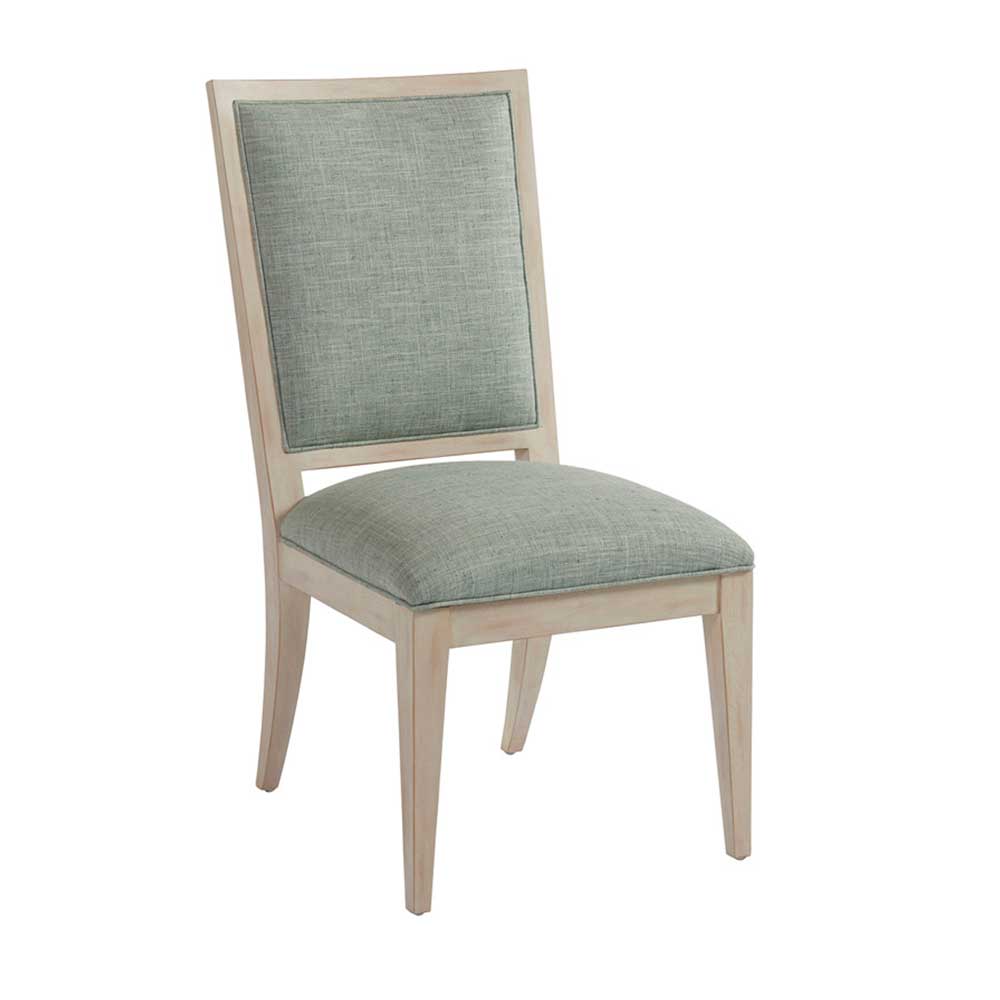 The classic design of the Eastbluff dining chair marries a wooden frame, shown in the Sandstone finish, with welted upholstered panels on the inside and outside back of the piece. The design comes standard in the Ventura pattern 423311, and is also available in the Sailcloth finish.