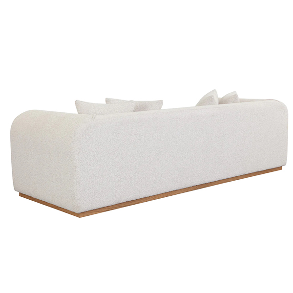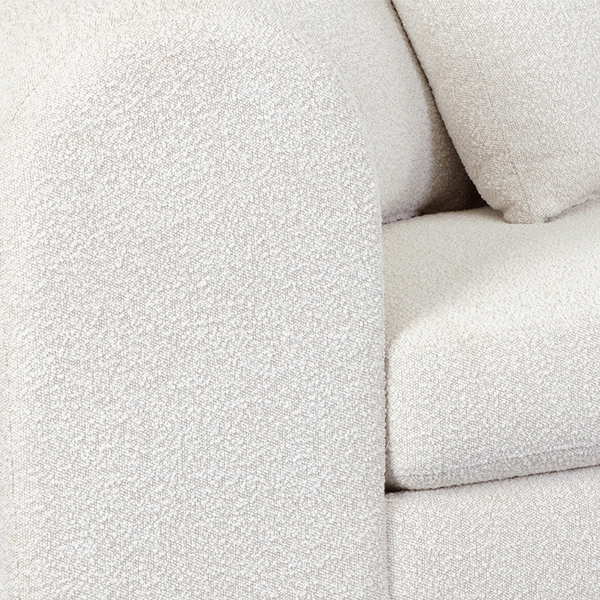 Rounded curves lend the Caspian Sofa a soothing silhouette. Upholstered in our stylish boucle copenhagen white fabric with generous proportions for ultimate comfort. A light oak wood base complements the contemporary style.