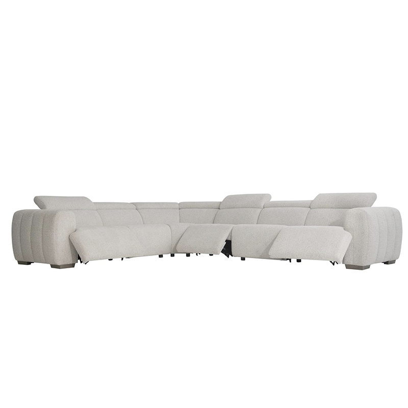 Luxurious fabric and deep channeling craft a supremely chic power motion sectional. W: 143.5 in D: 176.5 in H: 33 in
