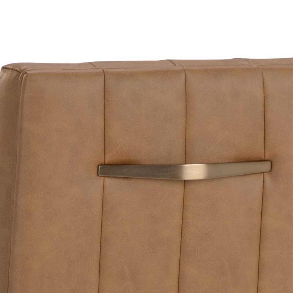 Minimal and classic best describes the Wilbur Barstool. Upholstered in milliken cognac faux leather with vertical channeling on the back seat for added flair. Finished with powder-coated stainless steel legs and a matching handle. Handle With Care: This design has been crafted with faux leather. Faux leather is manufactured to reflect the natural characteristics of leather; as such, colour variations, markings, wrinkles, grooves, and light scratches are appreciated characteristics. No two pieces will be alike