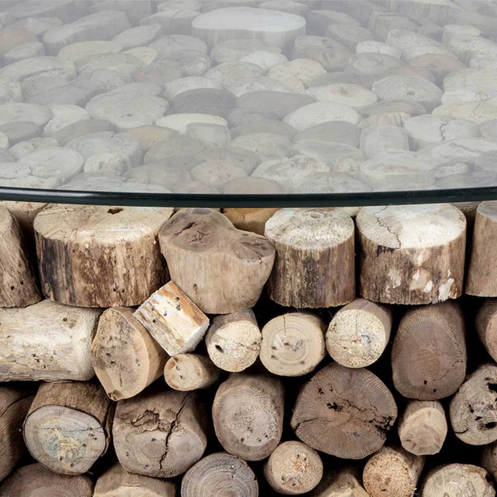 This exotic round coffee table will bring drama and dimension to living and lounge spaces. Each coffee table is uniquely handcrafted with driftwood pieces and finished with an tempered glass top. 0.00W x 39.50D x 12.00H in